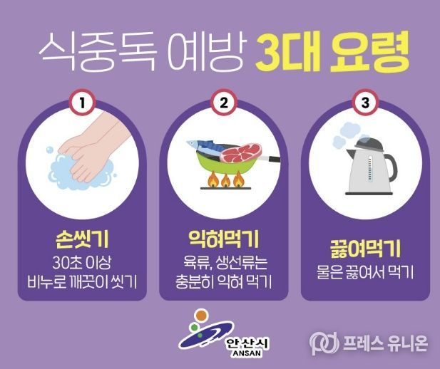 이민근 안산시장은 “식중독은 기본적인 위생수칙 준수만으로도 충분히 예방할 수 있다”며 “손 씻기, 익혀 먹기, 끓여 먹기 등 개인위생 수칙을 생활화해 주시길 바란다”고 말했다.