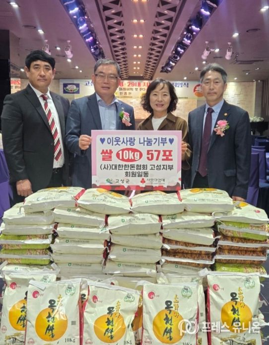 프레스유니온 강찬희 기자 | (사)대한한돈협회 고성지부(지부장 한창주)는 22일, 관내 어려운 이웃을 위해 쌀 10kg, 57포(약 160만원 상당)를 고성군에 기탁했다.