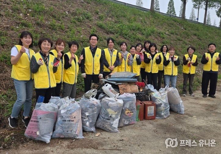 프레스유니온 강찬희 기자 | 고성읍은 지난 4월 12일, 고성읍 율대리 율대마을 일원에서 고성군 하나님의교회 세계복음선교협회 봉사자들과 함께 환경정화 활동을 펼쳤다.