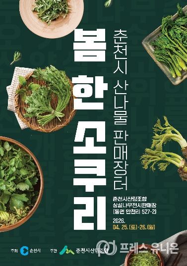 춘천시는 춘천시산림조합과 함께 오는 25~26일 이틀간 춘천시산림조합 상설나무전시판매장에서 ‘봄 한 소쿠리’ 산나물 판매장터를 연다.