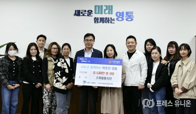 장수석 영통구청장은 “어려운 시기에 소외된 아이들을 위해 장기적인 후원을 결심해 주신 스마일봉사단에 깊은 감사를 드린다”며, “민관협력을 통해 복지 사각지대 없는 따뜻한 지역사회를 만들어가겠다”고 밝혔다.