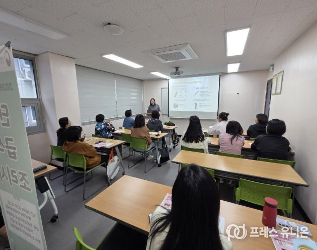 프레스유니온 강찬희 기자 | 논산시 어린이·사회복지급식관리지원센터(센터장 김연안)는 22일 논산여성인력개발센터에서 운영하는 직업교육훈련 과정인 ‘단체급식조리사’ 교육생 20여 명을 대상으로 단체급식 위생·안전교육을 실시했다.