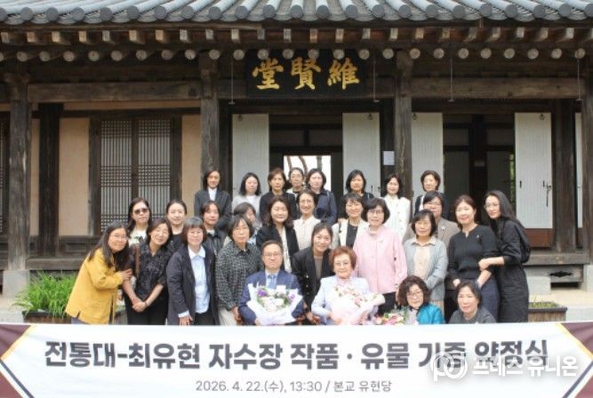 프레스유니온 강찬희 기자 | 국가유산청 한국전통문화대학교는 4월 22일 오후 1시 30분 교내 유현당(충남 부여군)에서 전통 자수와 공예 교육·연구 활성화를 위해 국가무형유산 최유현 자수장 보유자로부터 직접 제작한 자수 작품 124건과 도자기·민속품 등 소장 유물 1,185건을 기증받는 약정식을 개최했다.