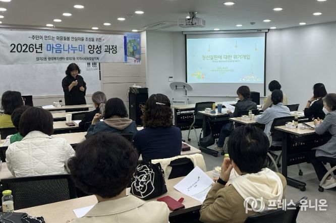 프레스유니온 김성길 기자 | 수원시 장안구 정자2동은 지난 22일, 정신건강 위기 대응 역량을 강화하기 위한 ‘마음나누미 양성과정’ 3회차 교육을 실시했다고 밝혔다.