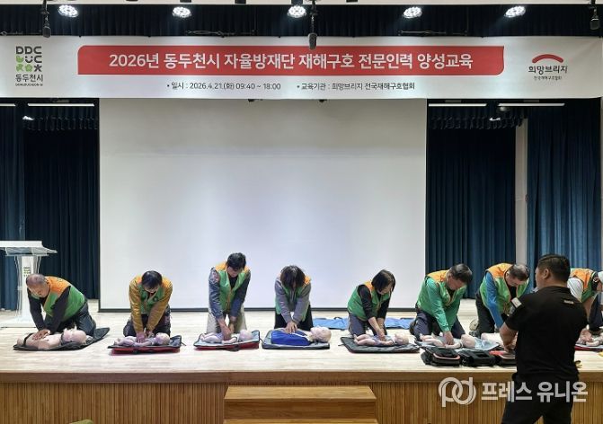 프레스유니온 김성길 기자 | 동두천시는 지난 21일 평생학습관 한울림공연장에서 ‘자율방재단 재해구호 교육’을 실시했다.