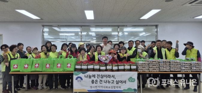 박용순 양서면장은 “작은 정성이지만 어려운 이웃에게 도움이 될 수 있어 뜻깊다”며 “앞으로도 지역사회보장협의체와 함께 소외된 이웃을 세심히 살피고, 모두가 따뜻하게 살아갈 수 있는 지역사회를 만들어 가겠다”고 말했다.