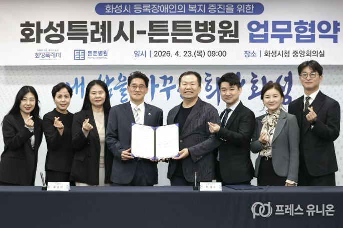 프레스유니온 김성길 기자 | 화성특례시는 23일 본관 2층 중앙회의실에서 튼튼병원과 화성시 등록장애인의 건강한 생활 지원과 삶의 질 향상을 위한 업무협약을 체결했다.