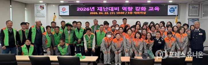 프레스유니온 강찬희 기자 | 부안군은 지난 22일 기후변화와 각종 재난 발생 빈도가 증가하는 상황에서 지역안전을 책임지는 핵심 인력을 대상으로 2026년 재난대비 역량 강화 교육을 실시했다.