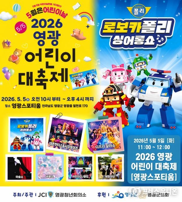 프레스유니온 강찬희 기자 | 영광청년회의소(JC)가 주최·주관하고 영광군·영광군의회가 후원하는 ‘2026년 어린이 대축제’가 오는 5월 5일 104회 어린이날을 맞아 대대적으로 개최된다.