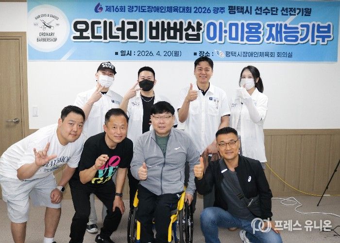 프레스유니온 김성길 기자 | 평택시장애인체육회는 ‘제46회 장애인의 날’을 맞아 지난 20일, 평택시 소재 ‘오디너리 바버샵’의 재능기부로 선수단 대상으로 이·미용 재능기부 행사를 진행했다.