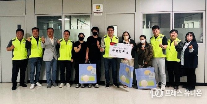 프레스유니온 김성길 기자 | LG전자노동조합 평택지부는 23일 평택시 송북동 지역 내 다문화가정을 대상으로 고향 방문 왕복 항공권을 지원했다.