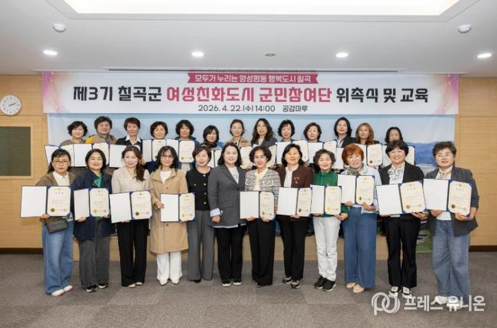한편 칠곡군은 여성친화 안심마을 조성과 여성의 사회·경제 참여 확대를 위한 역량강화 사업 등 다양한 양성평등 정책을 지속적으로 추진해 나가고 있다.