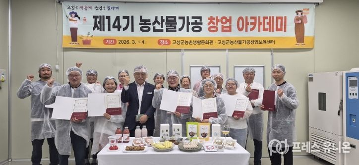 한편 고성군은 수료생을 대상으로 마케팅 심화교육과 제품개발반 운영 등 후속 지원 프로그램을 통해 농산물 가공 창업을 단계적으로 지원해 나갈 계획이다.