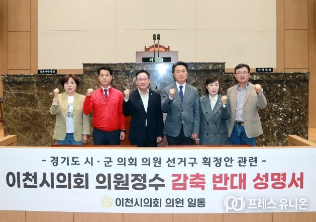 프레스유니온 강찬희 기자 | 이천시의회 의원 일동은 23일 본회의장에서 “경기도 시·군의원 선거구획정안”과 관련해 이천시 의원 정수 감축에 반대하는 공식 입장을 밝혔다. 최근 경기도 시·군의원 선거구획정위원회가 경기도의회에 제출한 초안에는 이천시 의원정수를 기존보다 1명 축소하는 방안이 포함된 것으로 알려졌다.