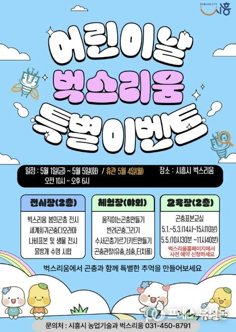 프레스유니온 김성길 기자 | 시흥시 곤충체험전시관 ‘벅스리움’은 어린이날을 맞아 아동과 가족이 함께 즐길 수 있는 ‘특별 프로그램’을 오는 5월 1일부터 5일까지 운영한다.