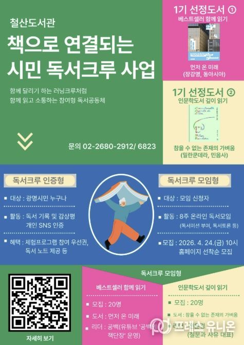 프레스유니온 김성길 기자 | 광명시 철산도서관이 시민이 함께 읽고 나누는 독서크루 운영을 시작한다.