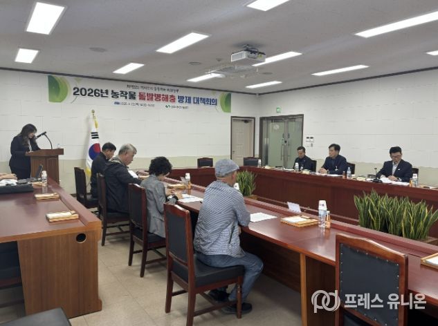 프레스유니온 강찬희 기자 | 상주시농업기술센터는 4월 23일 농업기술센터 소회의실에서 2026년도 농작물 돌발병해충 방제 대책회의를 개최했다.