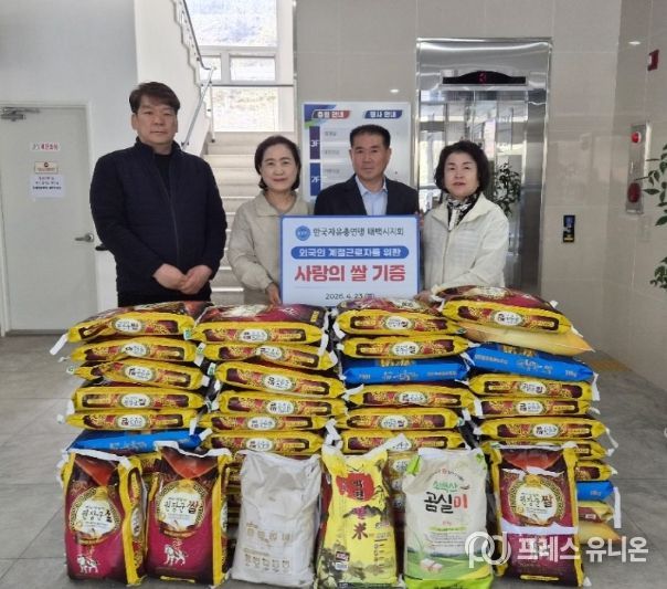 프레스유니온 강찬희 기자 | 한국자유총연맹 태백시지회(회장 홍충표)는 4월 23일 태백시 농업기술센터에 외국인 계절근로자를 위한 쌀 10kg 50포를 기부했다.