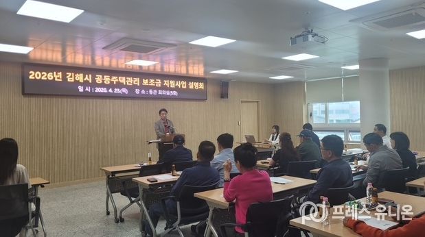 프레스유니온 강찬희 기자 | 김해시는 2026년 공동주택관리 보조금 지원사업에 선정된 23개 단지를 대상으로 23일 사업 설명회를 개최했다.