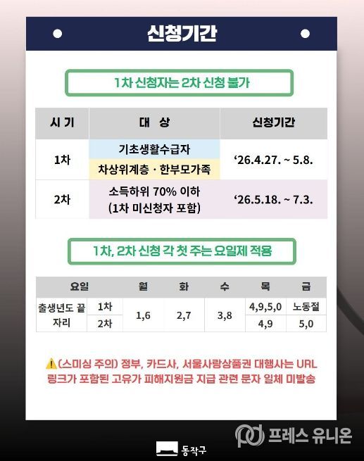 다만, 시행 첫 주에는 요일제를 적용해 출생연도 끝자리에 따라 신청 일이 다르므로 사전 확인이 필요하다.