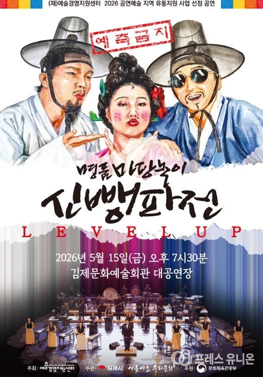 프레스유니온 강찬희 기자 | 판소리와 국악이 보여주는 최고의 무대 ‘마당놀이 신뺑파전’을 오는 5월 15일 오후 7시 30분 김제문화예술회관 대공연장에서 만나보자.