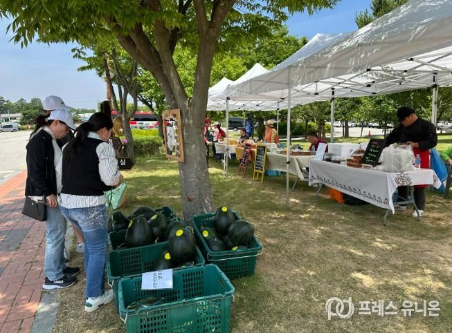주요 판매 품목으로는 ▲주민 가공식품(식혜, 오란다, 떡, 복분자 주스 등) ▲제철 농산물(수박, 고들빼기 등) ▲업사이클링제품(유리공방, 수공예품 등) 등이다.