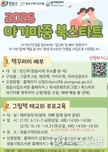 프레스유니온 강찬희 기자 | 정읍시가 태교 단계부터 책과 함께하는 육아 문화를 조성하기 위해 ‘임신부 아기마중 북스타트 사업’을 신규 운영한다.