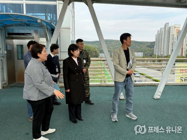 이날 현장에는 송옥란 의원을 비롯해 담당 공무원, 김은실 이장(양촌2리), 군부대 관계자 등이 함께 참석해 육교 및 엘리베이터의 운영 실태를 직접 확인하고 불편 사항을 공유했다. 현장을 꼼꼼히 살핀 송 의원은 엘리베이터 정기점 검 강화와 신속한 유지보수 체계 구축을 관계기관에 강력히 촉구했으며, 공사 기간 동안 학생들의 안전한 통행을 보장하기 위한 보완 대책 마련도 함께 요청했다.