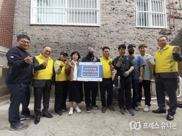 프레스유니온 김성길 기자 | 지난 23일 수원시 권선구 호매실동 지역사회보장협의체는 업무협약을 맺은 수원남부로타리 클럽과 주거환경개선 특화사업의 일환으로, 반지하 빌라에 거주하는 취약계층 어르신 댁에 에어컨을 설치했다.