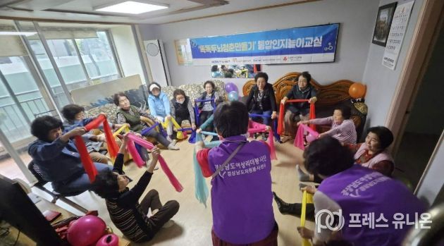 프레스유니온 강찬희 기자 | 사천시여성리더봉사단은 지난 21일 신우심포니경로당을 방문해 어르신들을 대상으로 치매 예방과 두뇌 건강 증진을 위한 ‘똑똑두뇌청춘만들기’통합인지놀이교실을 운영했다고 24일 밝혔다.