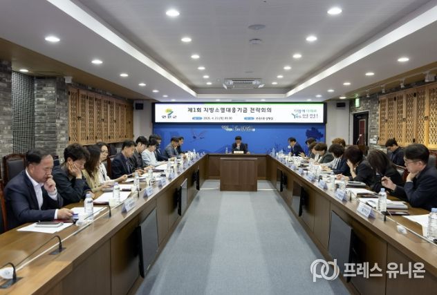 프레스유니온 김성길 기자 | 연천군은 지난 23일 군청 상황실에서 인구감소지역대응 기본계획 및 지방소멸대응기금 투자계획 수립을 위한 지방소멸대응기금 전략회의를 개최했다.