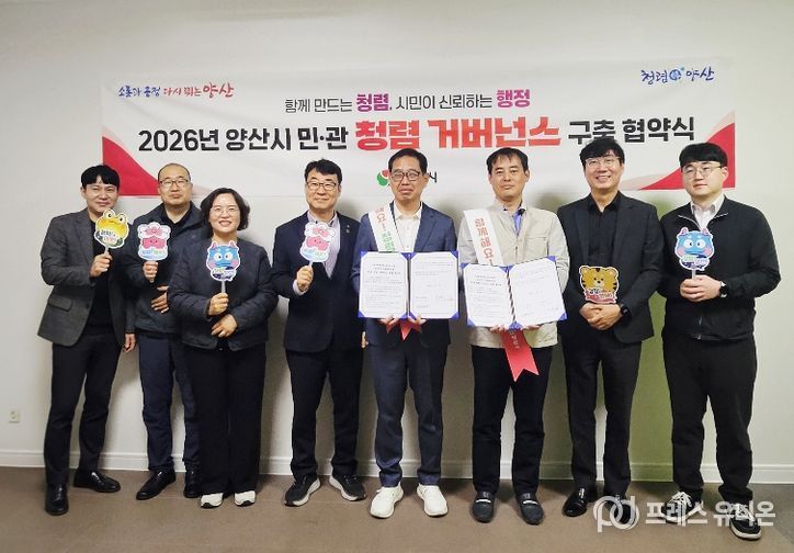 프레스유니온 강찬희 기자 | 양산시 미래혁신국(국장 장병조)은 투명하고 공정한 행정 실현을 위해 관내 주요 유관기관과 ‘민·관 청렴 거버넌스 협약’을 체결했다고 밝혔다.