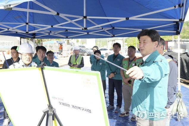 점검은 모개미천 수해복구사업장, 목현천 인명피해 우려지역 예·경보기 설치 현장, 경안배수펌프장 순으로 진행됐다. 모개미천에서는 하천 통수단면 확보와 둑 정비 상태를 중점적으로 점검했으며, 장마 이전 주요 공정의 조속한 마무리를 당부했다.