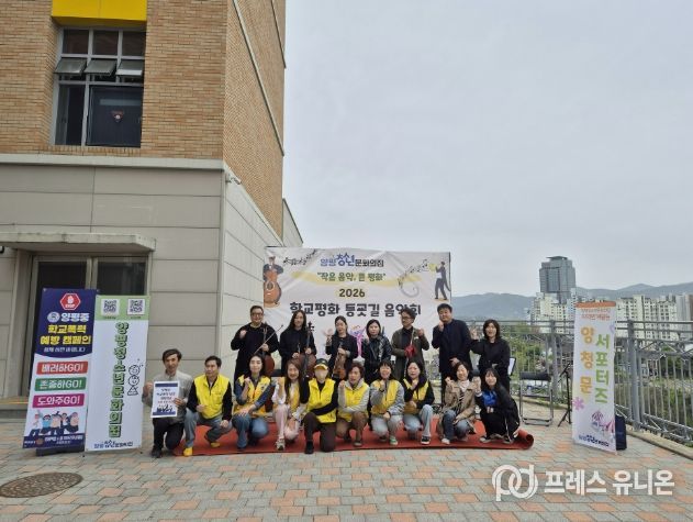 프레스유니온 김성길 기자 | 양평청소년문화의집은 지난 22일 양평중학교에서 지역 연계 사업 ‘양청문서포터즈’를 통해 ‘학교평화 등굣길 음악회’를 운영하고 학교폭력 예방 캠페인을 진행했다.