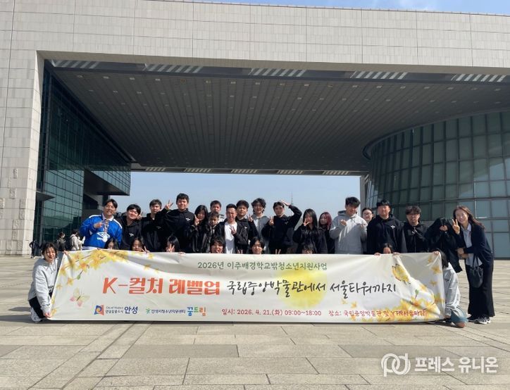 프레스유니온 김성길 기자 | 안성시학교밖청소년지원센터는 지난 21일, 관내 이주배경 학교 밖 청소년 30명을 대상으로 한국 문화에 대한 친밀감을 높이고 사회 적응을 돕기 위한 ‘K-컬처 레벨업: 박물관부터 타워까지’ 프로그램을 진행했다고 밝혔다.
