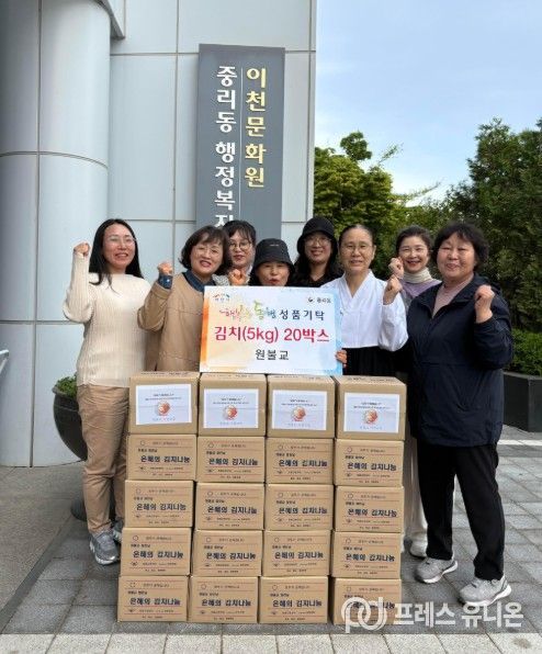 프레스유니온 김성길 기자 | 이천시 중리동행정복지센터는 원불교가 지역 내 어려운 이웃들을 위해 김치(5kg) 20박스를 기탁하며 따뜻한 나눔을 실천했다고 밝혔다. 이번 기탁은 경제적 어려움과 돌봄 공백 등으로 일상생활에 어려움을 겪고 있는 취약계층 이웃들에게 조금이나마 힘이 되고자 마련됐다.