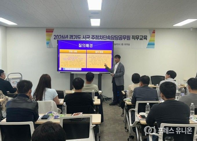 주요 교육은 도로교통법에 대한 이해를 비롯해 주정차 단속 기준 및 절차, 민원대응요령, 단속과정에서의 유의사항 등 현장에서 바로 적용할 수 있는 실무 위주로 이루어졌으며, 최근 증가하는 주정차 민원에 효과적으로 대응할 수 있도록 사례 중심의 교육도 병행됐다.