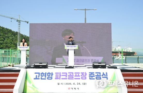 프레스유니온 강찬희 기자 | 거제시는 고현항 파크골프장 조성사업을 완료하고, 24일 준공식을 개최했다.
