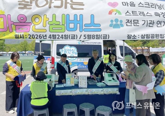 프레스유니온 강찬희 기자 | 함양군은 4월 24일 상림공원 일원에서 봄철 자살 고위험 시기인 ‘스프링피크(Spring Peak)’에 선제적으로 대응하기 위해 찾아가는 정신건강서비스 ‘마음안심버스’를 운영하고 자살 예방 홍보활동을 펼쳤다.