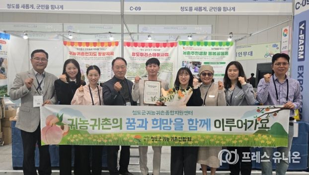 프레스유니온 강찬희 기자 | 청도군은 4월 24일부터 26일까지 3일간 수원컨벤션센터에서 열리는 Y-FARM EXPO 2026 지역살리기 박람회에 참가해 귀농·귀촌 홍보부스를 운영하고 있다고 밝혔다.