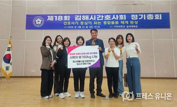 프레스유니온 강찬희 기자 | 김해시간호사회는 지난 23일 열린 제18회 정기총회에서 기증받은 쌀 150kg을 김해시 소재 정신재활시설 ‘리본하우스’에 전달했다고 24일 밝혔다.