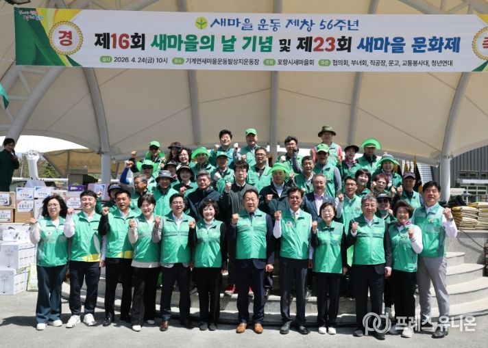 프레스유니온 강찬희 기자 | 포항시새마을회는 24일 기계면 새마을운동 발상지 운동장에서 ‘제16회 새마을의 날 기념식 및 제23회 새마을문화제’를 성황리에 개최했다.