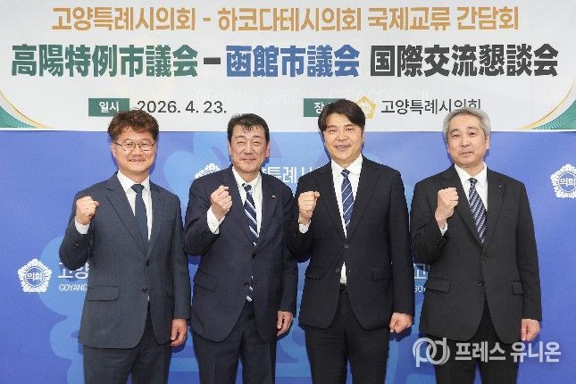 프레스유니온 강찬희 기자 | 고양특례시의회는 4월 23일 의장실에서 일본 하코다테시의회 대표단과 국제교류 간담회를 개최했다.