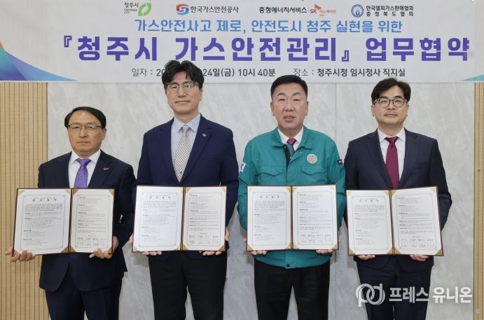 프레스유니온 김성길 기자 | 청주시는 24일 지역 내 가스사고 예방과 시민 안전 강화를 위해 관계기관 및 협회와 함께 선제적이고 강력한 가스안전 협력체계를 구축한다.