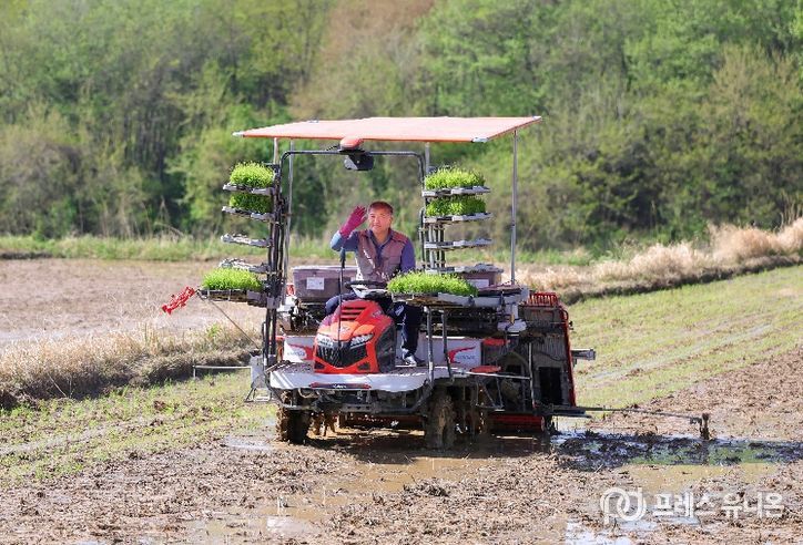 프레스유니온 강찬희 기자 | 함양군 지곡면 개평리 은혜들에서 4월 23일 2026년 첫 모내기를 시작되며 본격적인 영농철의 시작을 알렸다.