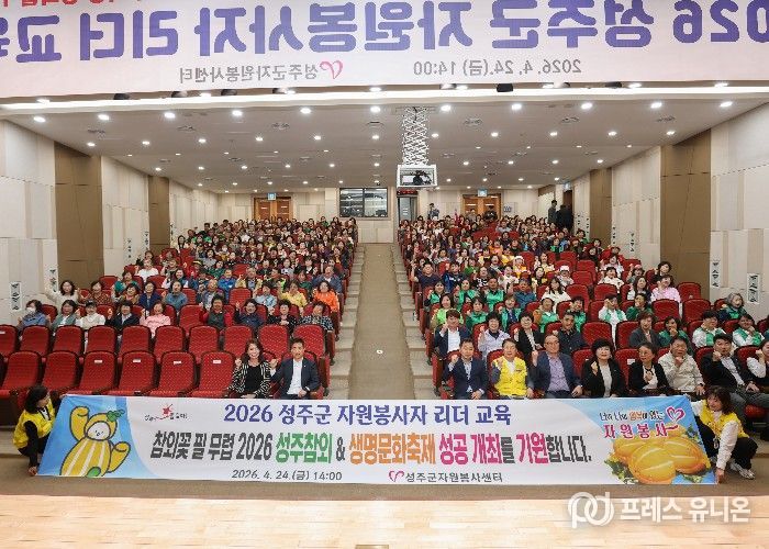 프레스유니온 강찬희 기자 | 경북 성주군자원봉사센터는 지역 공동체의 따뜻한 변화를 이끄는 자원봉사 리더들을 한자리에 모아 의미 있는 교육의 장을 마련했다. 4월 24일 성주군청 대강당에서 열린 '2026 성주군 자원봉사자 리더 교육'은 단순한 역량 강화 교육을 넘어 나눔과 연대의 가치를 되새기고, 다가오는 지역 대표 축제를 함께 준비하는 결속의 자리로 깊은 울림을 전했다.