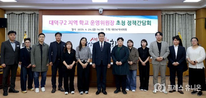 프레스유니온 강찬희 기자 | 대전광역시의회는 24일 의회 소통실에서 ‘대덕구2 지역 학교 운영위원장 초청 정책간담회’를 개최했다.