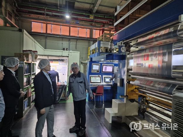 이날 현장에서는 포장재 제조업체 관계자들과 함께 업계의 애로사항에 대한 심도 있는 논의도 진행됐다. 업계 관계자들은 주로 ▲필름 원단 등 기초 원료 수급의 어려움 ▲다층 포장 구조에 따른 생산 제약 ▲수입 원료 의존으로 인한 불확실성 등을 제시했다.