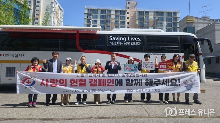 프레스유니온 김성길 기자 | 양주2동 적십자봉사회가 지난 24일 고읍지구대 주차장에서 ‘사랑의 헌혈 캠페인’을 열고 주민들을 대상으로 헌혈 참여를 독려했다.