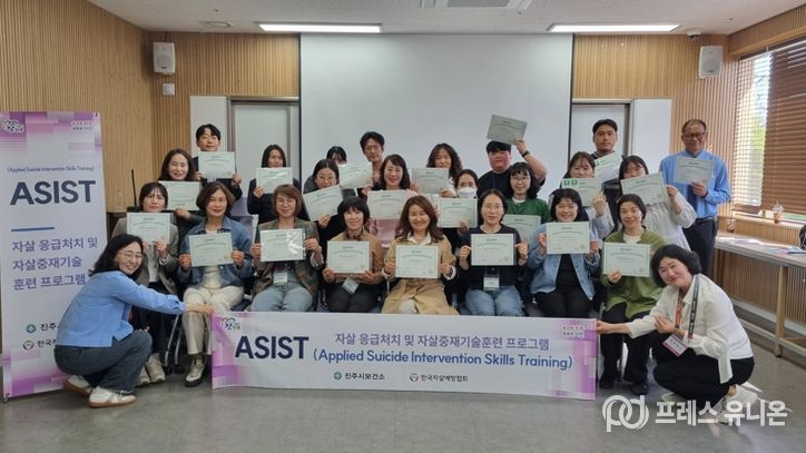 프레스유니온 강찬희 기자 | 진주시는 한국자살예방협회와 협력하여 지난 23일부터 24일까지 이틀간 ‘2026년 자살중재기술 훈련 프로그램(ASIST) 1회차(33기)’ 교육을 성공적으로 마무리했다고 밝혔다.